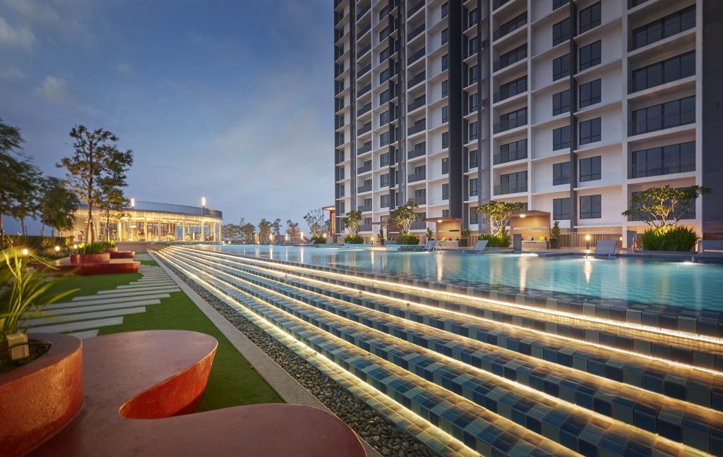Designed to make a bold statement, Luminari’s striking presence is intended to be highly visible, serving as an iconic profile in the city skyline. The distinctive L-shape formation not only adds to its architectural allure but also offers residents unparalleled panoramic views of Penang Island, creating a sense of connection with the surrounding natural beauty.